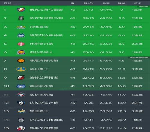 西部最新積分榜